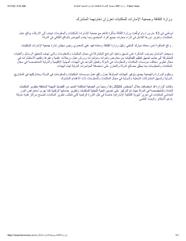 3/14/25, 9:45 AM كرﺗﺷﻣﻟا ﺎﻣﮭﻧوﺎﻌﺗ ناززﻌﺗ تﺎﺑﺗﻛﻣﻠﻟ تارﺎﻣﻹا ﺔﯾﻌﻣﺟو ﺔﻓﺎﻘﺛﻟا ةرازو - Fana News