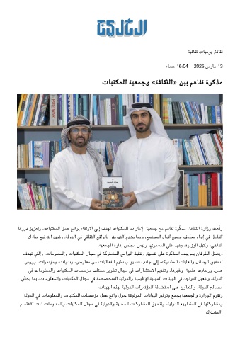 ﺎﻫرود ﺰﻳﺰﻌﺗو ،تﺎﺒﺘﻤﻟا ﻞﻤﻋ ﻊﻗاﻮﺑ ءﺎﻘﺗرﻻا ﻟإ فﺪﻬﺗ تﺎﺒﺘﻤﻠﻟ تارﺎﻣﻹا ﺔﻴﻌﻤﺟ ﻊﻣ ﻢﻫﺎﻔﺗ ةﺮﻛﺬﻣ ،ﺔﻓﺎﻘﺜﻟا ةرازو ﺖﻌّﻗو