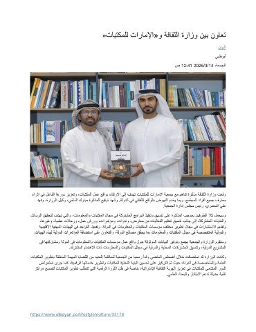 » تابتكملل تاراملإا«و ةفاقثلا ةرازو نيب نواعت