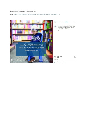 Publication: Instagram – Hormuz News Link: ةماعلا تابتكملا يف ةايحلا ىدم ةيناجم ةيوضع نينطاوملا ديلاوملا حنمت ةيتاراملإا ةفاقثلا ةرازو