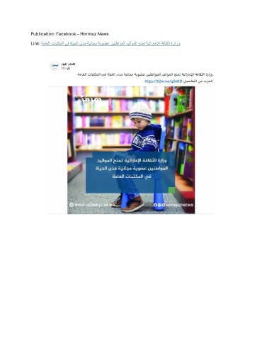 Publication: Facebook – Hormuz News Link: ةماعلا تابتكملا يف ةايحلا ىدم ةيناجم ةيوضع نينطاوملا ديلاوملا حنمت ةيتاراملإا ةفاقثلا ةرازو