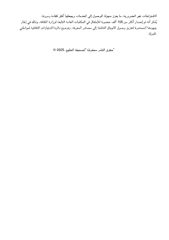 رﺎﻃإ ﻓ ﻚﻟذو ،ﺔﻓﺎﻘﺜﻟا ةرازﻮﻟ ﺔﻌﺑﺎﺘﻟا ﺔﻣﺎﻌﻟا تﺎﺒﺘﻤﻟا ﻓ لﺎﻔﻃﻸﻟ ﺔﻳﻮﻀﻋ ﻒﻟأ 100 ﻦﻣ ﺮﺜﻛأ راﺪﺻإ ﻢﺗ ﻪﻧأ ﺮﻛﺬﻳ