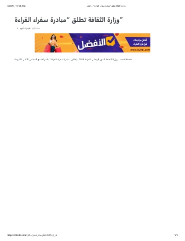 4/2/25, 11:18 AM رﺑﺧﻟا – ”ةءارﻘﻟا ءارﻔﺳ ةردﺎﺑﻣ“ ﻖﻠطﺗ ﺔﻓﺎﻘﺛﻟا ةرازو