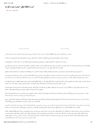 4/2/25, 11:17 AM مﻼﺳﻟا ﺔﻟﺎﺳر – ”ةءارﻘﻟا ءارﻔﺳ ةردﺎﺑﻣ“ ﻖﻠطﺗ ﺔﻓﺎﻘﺛﻟا ةرازو