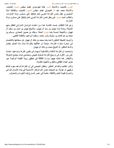 ،تارﺎﻣﻹا ﺔﻟود ىﻮﺘﺴﻣ ﻰﻠﻋ 2023 مﺎﻌﻟ ﻲﺑﺮﻌﻟا ةءاﺮﻘﻟا يﺪﺤﺗ ﻞﻄﺑ يرﻮﺼﻨﻤﻟا