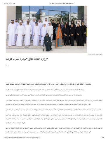 4/2/25, 11:14 AM 24 ﻊﻗوﻣ - "ةءارﻘﻟا ءارﻔﺳ ةردﺎﺑﻣ" ﻖﻠطﺗ ﺔﻓﺎﻘﺛﻟا ةرازو