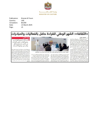 Publication: Emarat Al Youm Country: UAE Circulation: 80,000 Date: 13 March 2025 Page: 15