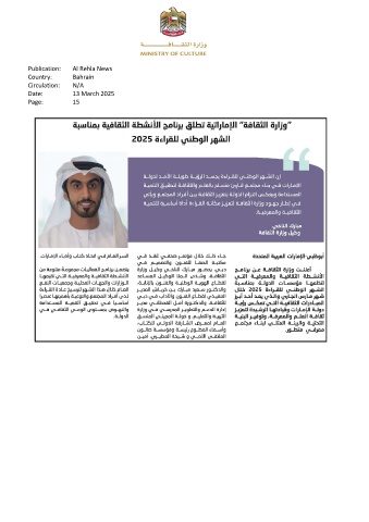 Publication: Al Rehla News Country: Bahrain Circulation: N/A Date: 13 March 2025 Page: 15