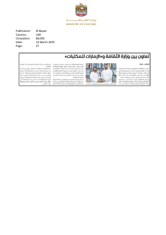 Publication: Al Bayan Country: UAE Circulation: 88,000 Date: 14 March 2025 Page: 27