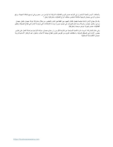 ﺮيﻮﻄت ﻰﻠﻋ ﻞﻤﻌﻟا ﺔﻠﺻاﻮﻤب ﺎهماﺰﺘﻟا ةﺪكﺆم ،نﺎﻤﺠﻋ حﺎﻨﺟ راز ﻦم ﻞﻜﻟ ﺎهﺮﻜش ﻦﻋ ﺔﯿﺣﺎﯿﺴﻟا ﺔﯿﻤﻨﺘﻟا ةﺮﺋاد ﺖبﺮﻋأ ،ﺔكرﺎﺸﻤﻟا مﺎﺘخ ﻲﻓو