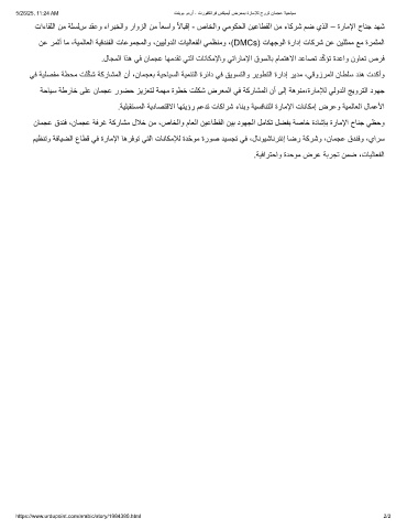 ﺔﺣﺎﯾﺳ ﺔطرﺎﺧ ﻰﻠﻋ نﺎﻤﺠﻋ رﻮﻀﺣ ﺰﯾﺰﻌﺘﻟ ﺔﻣﮭﻣ ةوطﺧ تﻠﻛﺷ ضرﻌﻣﻟا ﻲﻓ ﺔﻛرﺎﺷﻣﻟا نأ ﻰﻟإ ﺔھوﻧﻣ،ةرﺎﻣﻺﻟ ﻲﻟوﺪﻟا ﺞﯾوﺮﺘﻟا دﻮﮭﺟ
