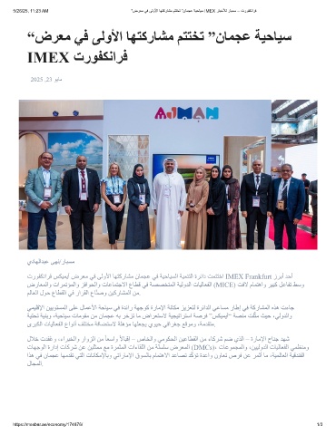 5/26/25, 11:23 AM “ضﺮﻌﻣ ﻲﻓ ﻰﻟوﻷا ﺎﮭﺘﻛرﺎﺸﻣ ﻢﺘﺘﺨﺗ ”نﺎﻣﺟﻋ ﺔﯾﺣﺎﯾﺳ IMEX رﺎﺑﺧﻸﻟ رﺎﺑﺳﻣ – ترﻮﻔﻜﻧاﺮﻓ