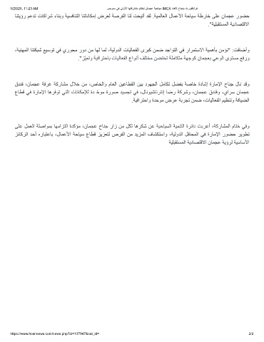 ﻰﻠﻋ ﻞﻤﻌﻟا ﺔﻠﺻاﻮﻤﺑ ﺎﮭﻣاﺰﺘﻟا ةﺪﻛﺆﻣ ،نﺎﻤﺠﻋ حﺎﻨﺟ راز ﻦﻣ ﻞﻜﻟ ﺎھﺮﻜﺷ ﻦﻋ ﺔﯿﺣﺎﯿﺴﻟا ﺔﯿﻤﻨﺘﻟا ةﺮﺋاد ﺖﺑﺮﻋأ ،ﺔﻛرﺎﺸﻤﻟا مﺎﺘﺧ ﻲﻓو