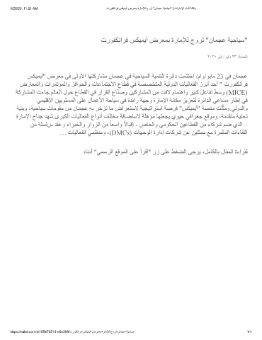 5/26/25, 11:21 AM ترﻮﻔﻜﻧاﺮﻓ سﻛﯾﻣﯾآ ضرﻌﻣﺑ ةرﺎﻣﻺﻟ جورﺗ "نﺎﻣﺟﻋ ﺔﯾﺣﺎﯾﺳ" | تارﺎﻣﻹا ءﺎﺑﻧأ ﺔﻟﺎﻛو