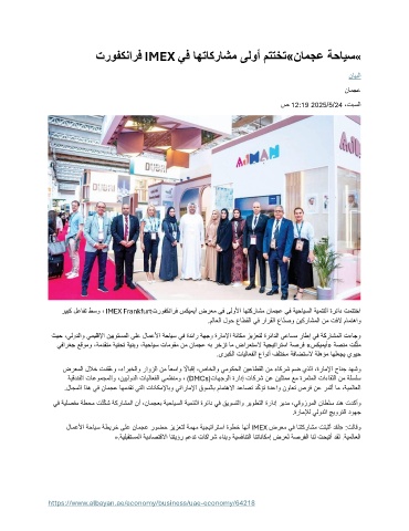 لامعﻷا ﺔﺣايس ﺔطيرخ ﻰﻠع ناﻤﺠع رﻮﻀﺣ ﺰيﺰﻌﺘل ﺔﻤهم ﺔﯿﺠﯿتاﺮﺘسا ةﻮﻄخ اهﻧأ IMEX ضﺮﻌم ﻲﻓ اﻨﺘكراﺸم ﺖﺘﺒثأ ﺪﻘل« :ﺖلاﻗو