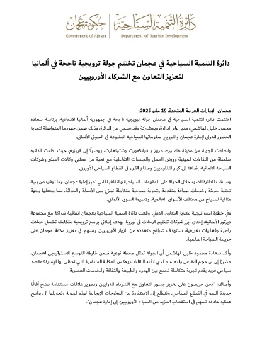 : 2025 ﻮﻳﺎﻣ 19 ،ةﺪﺤﺘﻤﻟا ﺔﻴﺑﺮﻌﻟا تارﺎﻣﻹا ،نﺎﻤﺠﻋ