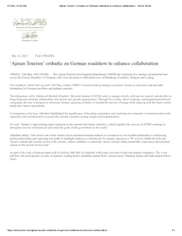 5/13/25, 10:52 AM 'Ajman Tourism' embarks on German roadshow to enhance collaboration - WeTel World