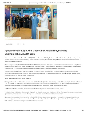 5/5/25, 9:37 AM Ajman Unveils Logo and Mascot for Asian Bodybuilding Championship at ATM 2025