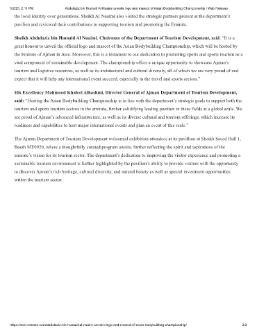 5/2/25, 2:11 PM Abdulaziz bin Humaid Al Nuaimi unveils logo and mascot of Asian Bodybuilding Championship | Web Release