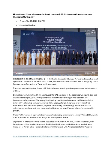 CHONGQING, 23rd May, 2025 (WAM) -- H.H. Sheikh Ammar bin Humaid Al Nuaimi, Crown Prince of