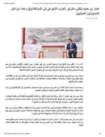5/26/25, 8:56 AM 7 تارﺎﻣﻻا | رادﻟا رﺎﺑﺧأ | نﯾﯾﻧﯾﺻﻟا نﯾﻟوؤﺳﻣﻟا رﺎﺑﻛ نﻣ ًاددﻋو ﻎﻧﯾﺷﺗﻐﻧوﺷﺗ ﻲﻓ ﻲﻋوﯾﺷﻟا بزﺣﻟا رﯾﺗرﻛﺳ ﻲﻘﺗﻠﯾ دﯾﻣﺣ نﺑ رﺎﻣﻋ