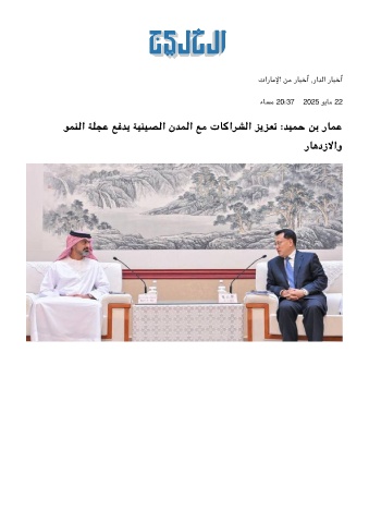 تارﺎﻣﻹا ﻦﻣ رﺎﺒﺧأ ,راﺪﻟا رﺎﺒﺧأ ءﺎﺴﻣ 20:37 2025 ﻮﻳﺎﻣ 22 ﻮﻤﻨﻟا ﺔﻠﺠﻋ ﻊﻓﺪﻳ ﺔﻴﻨﻴﺼﻟا نﺪﻤﻟا ﻊﻣ تﺎﻛاﺮﺸﻟا ﺰﻳﺰﻌﺗ :ﺪﻴﻤﺣ ﻦﺑ رﺎﻤﻋ رﺎﻫدزﻻاو