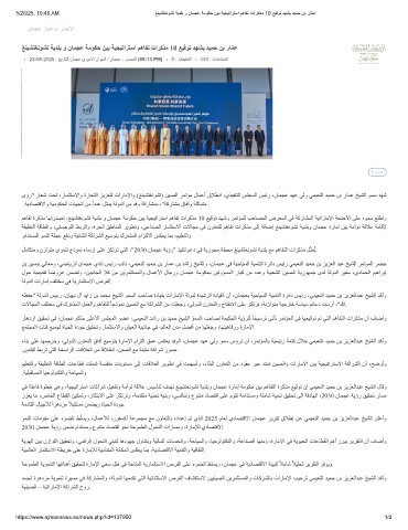 ﻮﻤﻨﻟا تﺎﻣﻮﻘﻣ ﻰﻠﻋ ءﻮﻀﻟا ﻂ ّ ﻠﺴﯾو ،لﺎﻤﻋﻸﻟ درﻮﻔﺴﻛأ ﺔﻋﻮﻤﺠﻣ ﻊﻣ نوﺎﻌﺘﻟﺎﺑ هداﺪﻋإ ﻢﺗ يﺬﻟا 2025 مﺎﻌﻟ يدﺎﺼﺘﻗﻻا نﺎﻤﺠﻋ ﺮﯾﺮﻘﺗ قﻼطإ ﻦﻋ ﻲﻤﯿﻌﻨﻟا ﺪﯿﻤﺣ ﻦﺑ ﺰﯾﺰﻌﻟاﺪﺒﻋ ﺦﯿﺸﻟا ﻦﻠﻋأو