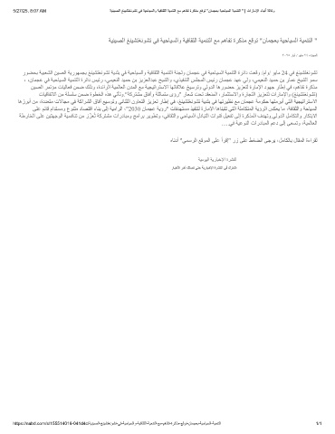 5/27/25, 8:07 AM ﺔﯾﻧﯾﺻﻟا ﻎﻧﯾﺷﺗﻐﻧوﺷﺗ ﻲﻓ ﺔﯾﺣﺎﯾﺳﻟاو ﺔﯾﻓﺎﻘﺛﻟا ﺔﯾﻣﻧﺗﻟا ﻊﻣ مھﺎﻔﺗ ةرﻛذﻣ ﻊﻗوﺗ "نﺎﻣﺟﻌﺑ ﺔﯾﺣﺎﯾﺳﻟا ﺔﯾﻣﻧﺗﻟا " | تارﺎﻣﻹا ءﺎﺑﻧأ ﺔﻟﺎﻛو