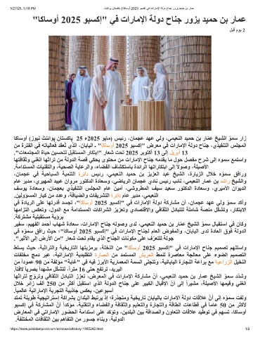 ﻲﻓ ةدﺎﯾﺮﻟا ﻰﻠﻋ ﺎﮭﺗرﺪﻗ ﺪﺴﺠﺗ ،"ﺎﻛﺎﺳوأ 2025 ﻮﺒﺴﻛإ" ﻲﻓ تارﺎﻣﻹا ﺔﻟود ﺔﻛرﺎﺸﻣ نأ ،نﺎﻤﺠﻋ ﺪﮭﻋ ﻲﻟو ّ ﻮﻤﺳ ﺪﻛأو