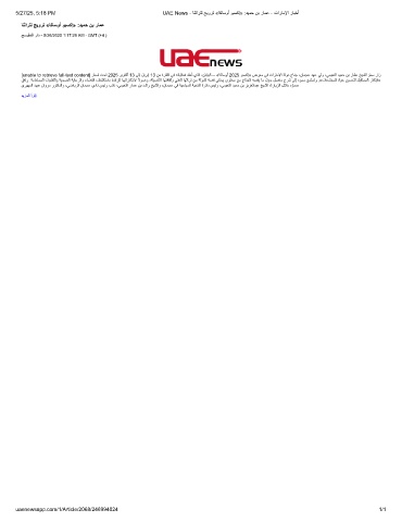 5/27/25, 5:18 PM UAE News - ﺎﻧﺛارﺗﻟ ﺞﯾورﺗ «ﺎﻛﺎﺳوأ وﺑﺳﻛإ» :دﯾﻣﺣ نﺑ رﺎﻣﻋ - تارﺎﻣﻹا رﺎﺑﺧأ