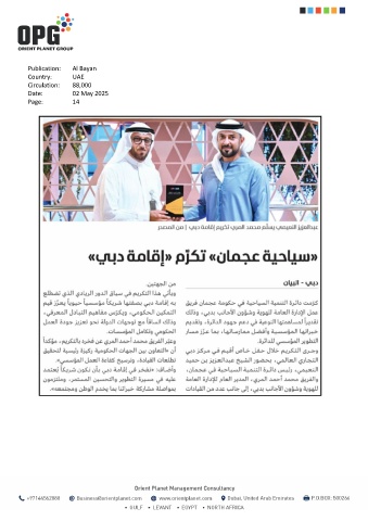 Publication: Al Bayan Country: UAE Circulation: 88,000 Date: 02 May 2025 Page: 14
