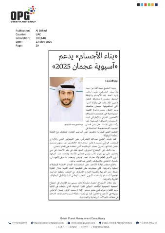 Publication: Al Etihad Country: UAE Circulation: 109,640 Date: 23 May 2025 Page: 29