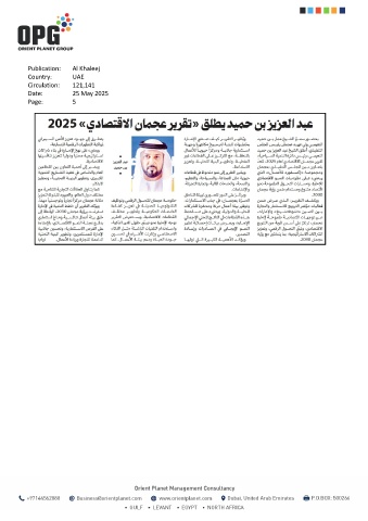 Publication: Al Khaleej Country: UAE Circulation: 121,141 Date: 25 May 2025 Page: 5