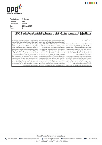 Publication: Al Bayan Country: UAE Circulation: 88,000 Date: 25 May 2025 Page: 2