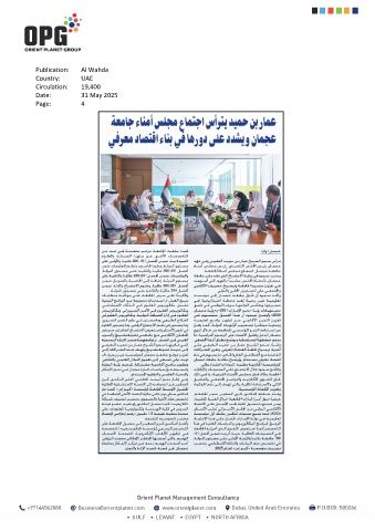 Publication: Al Wahda Country: UAE Circulation: 19,400 Date: 31 May 2025 Page: 4
