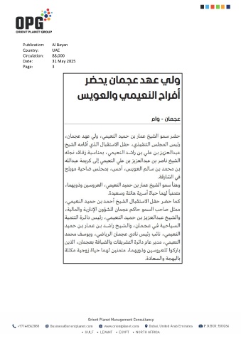Publication: Al Bayan Country: UAE Circulation: 88,000 Date: 31 May 2025 Page: 3