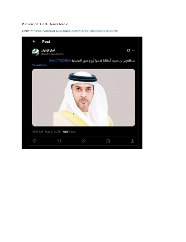 Publication: X- UAE News Arabic Link: https://x.com/UAENewsArabic/status/1919490069863510201