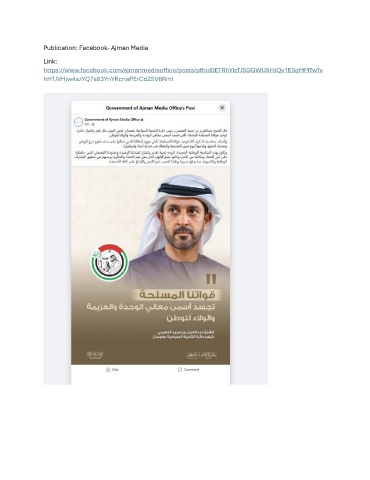 Publication: Facebook- Ajman Media Link: https://www.facebook.com/ajmanmediaoffice/posts/pfbid0ETRhYizTJSGGWU9HJQv1E3qMMTwTv hHTJVHjw4szYQ7s83YnYRcnaPErCdZSV6Rml