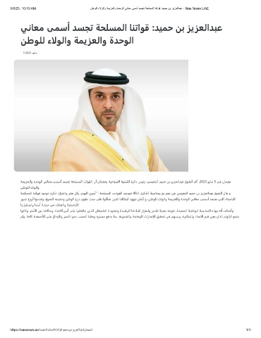 5/6/25, 10:19 AM نطوﻠﻟ ءﻻوﻟاو ﺔﻣﯾزﻌﻟاو ةدﺣوﻟا ﻲﻧﺎﻌﻣ ﻰﻣﺳأ دﺳﺟﺗ ﺔﺣﻠﺳﻣﻟا ﺎﻧﺗاوﻗ :دﯾﻣﺣ نﺑ زﯾزﻌﻟادﺑﻋ - Nas News UAE