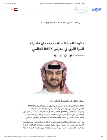 5/20/25, 10:32 AM ضرﻌﻣ ﻲﻓ ﻰﻟوﻷا ةرﻣﻠﻟ كرﺎﺷﺗ نﺎﻣﺟﻌﺑ ﺔﯾﺣﺎﯾﺳﻟا ﺔﯾﻣﻧﺗﻟا ةرﺋاد IMEX مھ نﻣ | رﺑﺧﻟا ضرﻋ | ﻲﻣﻟﺎﻌﻟا