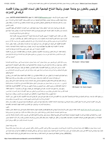 4/14/25, 1:06 PM تارﺎﻣﻹا ﻲﻓ هﺎﻓرﻟا دﺎﺻﺗﻗا ةزﺋﺎﺟﺑ نﯾزﺋﺎﻔﻟا ءﺎﻣﺳأ نﻠﻌﺗ ﺔﯾﻌﻣﺎﺟﻟا خﺎﻧﻣﻟا ﺔﻛﺑﺷو نﺎﻣﺟﻋ ﺔﻌﻣﺎﺟ ﻊﻣ نوﺎﻌﺗﻟﺎﺑ سﯾﺑﻧﯾرﻏ | Middle East News Dispatch