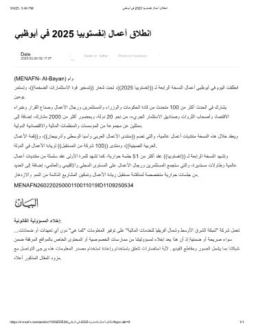 رﻣﺗﺳﺗو ،((ﺔﻣﺧﺿﻟا تارﺎﻣﺛﺗﺳﻻا ةوﻗ رﯾﺧﺳﺗ)) رﺎﻌﺷ تﺣﺗ ،((2025 ﺎﯾﺑوﺗﺳﻔﻧإ)) ـﻟ ﺔﻌﺑارﻟا ﺔﺧﺳﻧﻟا لﺎﻣﻋأ ﻲﺑظوﺑأ ﻲﻓ موﯾﻟا تﻘﻠطﻧا