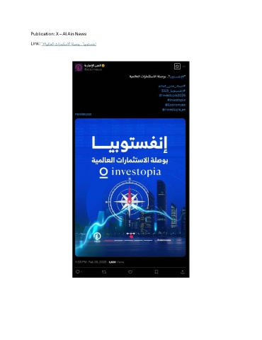 Publication: X – Al Ain News Link: "#ﺔﻴﳌﺎﻌﻟا تارﺎﻤﺜتﺳﻻا ﺔﻠﺻﻮﺑ .."ﺎﻴ�ﻮﺘﺴﻔﻧإ