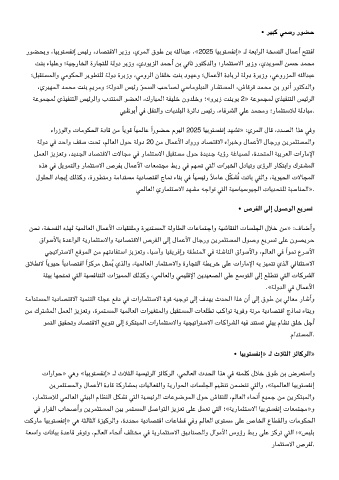 رﻮﻀﺤﺑو ،ﺎﻴﺑﻮﺘﺴﻔﻧإ ﺲﻴﺋر ،دﺎﺼﺘﻗﻻا ﺮﻳزو ،يﺮﻤﻟا قﻮﻃ ﻦﺑ ﻪﻟاﺪﺒﻋ ،«2025 ﺎﻴﺑﻮﺘﺴﻔﻧإ» ـﻟ ﺔﻌﺑاﺮﻟا ﺔﺨﺴﻨﻟا لﺎﻤﻋأ ﺢﺘﺘﻓا