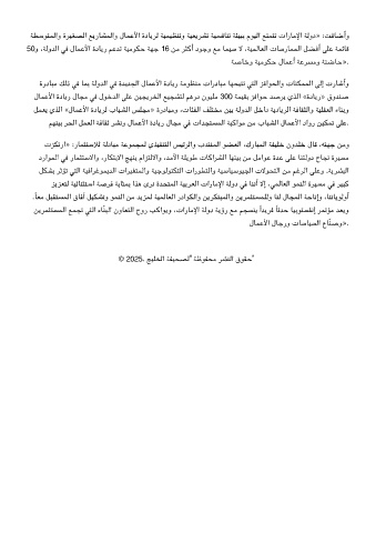 ﺔﻄﺳﻮﺘﻤﻟاو ةﺮﻴﻐﺼﻟا ﻊﻳرﺎﺸﻤﻟاو لﺎﻤﻋﻷا ةدﺎﻳﺮﻟ ﺔﻴﻤﻴﻈﻨﺗو ﺔﻴﻌﻳﺮﺸﺗ ﺔﻴﺴﻓﺎﻨﺗ ﺔﺌﻴﺒﺑ مﻮﻴﻟا ﻊﺘﻤﺘﺗ تارﺎﻣﻹا ﺔﻟود» :ﺖﻓﺎﺿأو