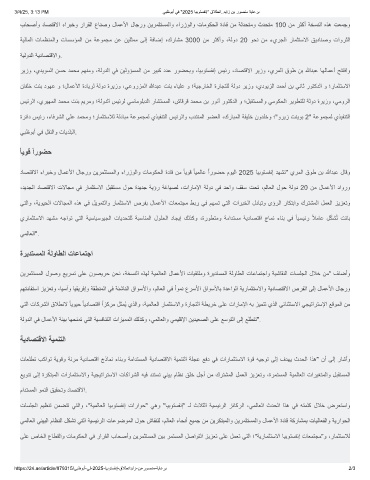 دﺎﺻﺗﻗﻻا ءارﺑﺧو لﺎﻣﻋﻷا لﺎﺟرو نﯾرﻣﺛﺗﺳﻣﻟاو ءارزوﻟاو تﺎﻣوﻛﺣﻟا ةدﺎﻗ نﻣ ً ﺎﯾوﻗ ً ﺎﯾﻣﻟﺎﻋ ًاروﺿﺣ موﯾﻟا 2025 ﺎﯾﺑوﺗﺳﻔﻧإ دﮭﺷﺗ" يرﻣﻟا قوط نﺑ ﷲدﺑﻋ لﺎﻗو