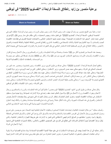 لﺎﺟرو نﯾرﻣﺛﺗﺳﻣﻟاو ءارزوﻟاو تﺎﻣوﻛﺣﻟا ةدﺎﻗ نﻣ ً ﺎﯾوﻗ ً ﺎﯾﻣﻟﺎﻋ ًاروﺿﺣ موﯾﻟا ″2025 ﺎﯾﺑوﺗﺳﻔﻧإ“ دﮭﺷﺗ“ يرﻣﻟا قوط نﺑ ﷲدﺑﻋ ﻲﻟﺎﻌﻣ لﺎﻗو