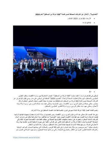 . تاراملإا ةلود يف لبقتسملا داصتقا تاعاطق ةيسفانت زيزعت يف مهست ةئشان ةكرش 100 لضفأ ةمئاقلا مضتو