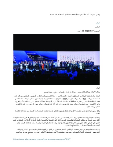 تاكرشو راكتبلاا قيدانصو ةيموكحلا تاهجلا عم اهتاكارش زيزعت ،»لبقتسملا نم ةكرش 100 « ةردابم نم 2025 ةخسن لصاوتو