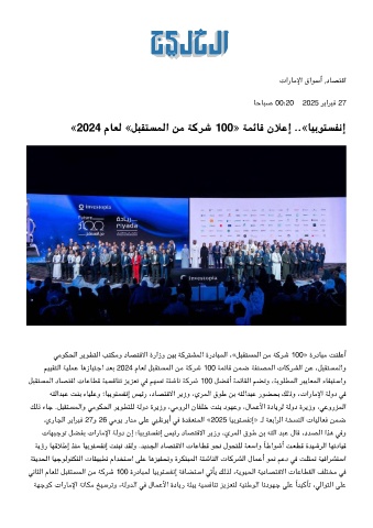 «2024 مﺎﻌﻟ «ﻞﺒﻘﺘﺴﻤﻟا ﻦﻣ ﺔﻛﺮﺷ 100» ﺔﻤﺋﺎﻗ نﻼﻋإ ..«ﺎﻴﺑﻮﺘﺴﻔﻧإ